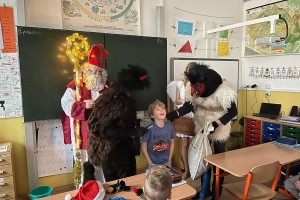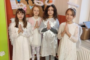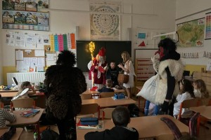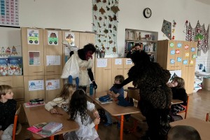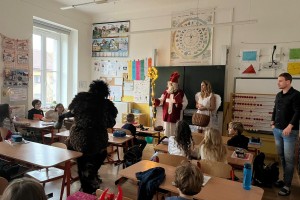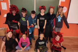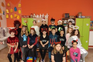 Děti dostaly od Mikuláše a anděla sladké odměny a ty zlobivé si čerti označkovali a musely čertům slíbit, že se jejich chování zlepší:-)