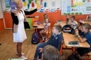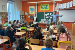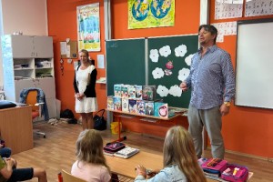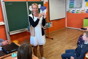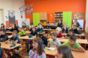 Další školní týden zahájili žáci 3.,4. a 5.ročníku netradičně, a to besedou s paní spisovatelkou Michaelou Fišarovou. Tu doprovázel herec pan Miroslav Reil. Společně velice poutavě zdramatizovali ukázky z některých knih. Diváci byli nadšeni a oba aktéry odměnili potleskem. V závěru besedy si děti mohly koupit autorčiny knihy, do kterých jim vepsala věnování.