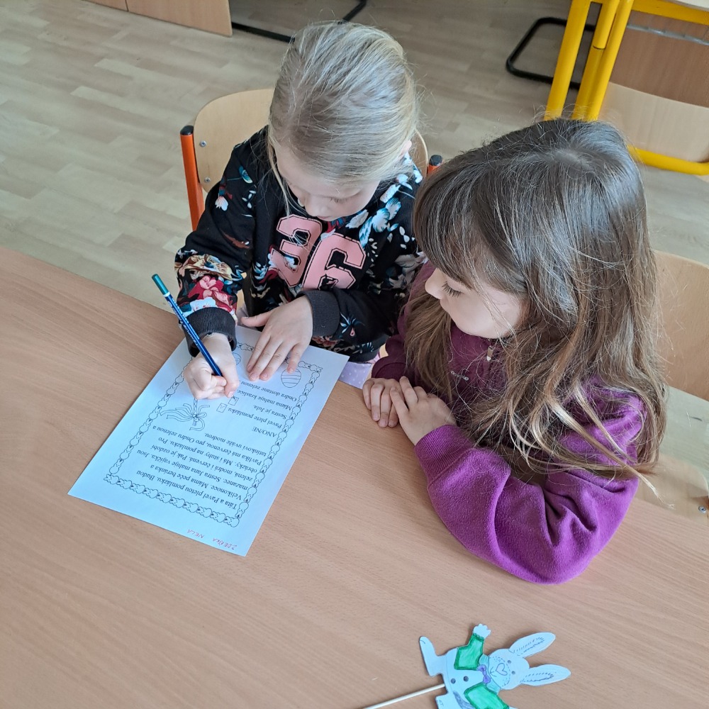 27.března (poslední den před velikonočními prázdninami) jsme se ve třídě zapojili do projektu Velikonoce, seznámili se s různými zvyky, tradicemi, naučili zápis v tabulce, matematických pyramidách a v řetězených barevných příkladech, řešili rébusy a četli s doplňovačkou.