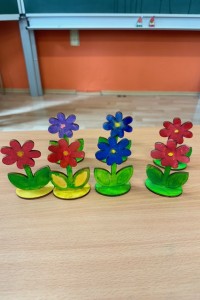 Práce s dřevěnými výřezy- skřítci a květiny- ta nás moc bavila🌼