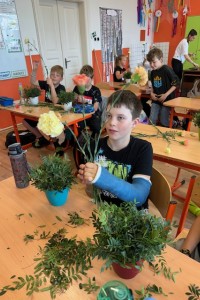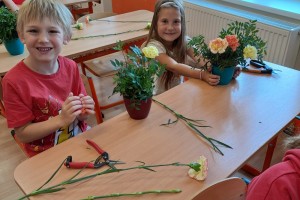 V pátek nás navštívila milá paní floristka Barbora Stropková. Seznámila nás se zásadami aranžování květin. Každý si vyrobil tzv. “vypichovaný květináček”. Děti pracovaly s nadšením a těšily se, jak potěší maminku dárkem ke Dni matek .
