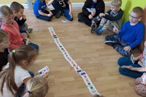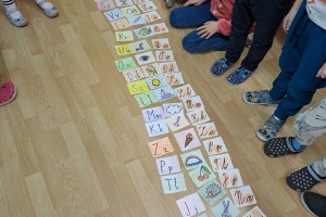 Procvičujeme naučená písmena, rozeznáváme geometrické tvary, počítáme do 20.