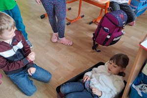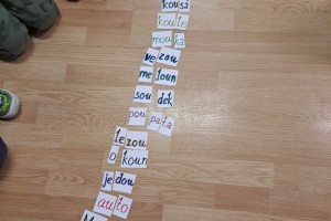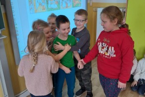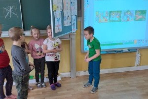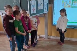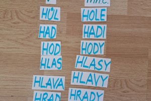 Skládali jsme ze slabik slova s au, ou, dramatizovali pohádku O Smolíčkovi, četli slova s H,h a zároveň si zkoušeli zařadit k jednotnému a množnému číslu a pracovali při prvouce na tabletech - vyhledávali jarní květiny.