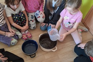 Po jarních prázdninách nás čekalo plno akcí: masopust, divadlo v Kostelním Hlavně i v Počernicích. V matematice jsme se seznámili s jednotkami délky, váhy i objemu a pro přiblížení jsme měřili, těžkali i lili. Protože březen je měsíc knihy, četli i hráli jsme pohádky „Hrnečku, vař!“ , „ Boudo, budko“.