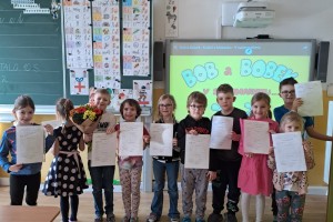 Začali jsme počítat do 20, ale stále opakujeme formou her i počítání do deseti, počítáme s penězi, nakupujeme. Do školy jsme se vrátili na svátek Tří králů a hned si koledu zahráli. Dramatizovali jsme i písničku Adámku náš. Přidáváme další a další písmenka, dokážeme napsat diktát písmen i slabik a začínáme číst krátké příběhy. Hráli jsme si na pošťáka a učili se, jak se píše adresa i dopis. Největší událostí bylo první vysvědčení!