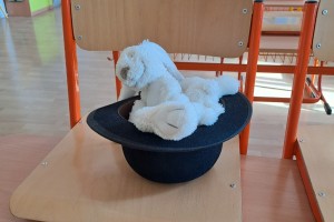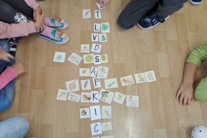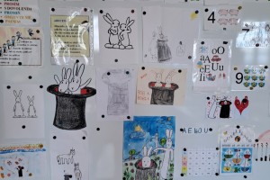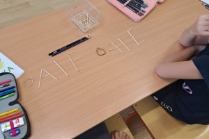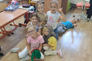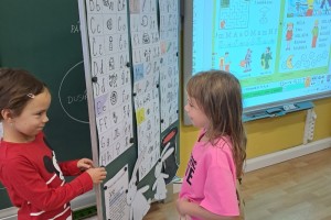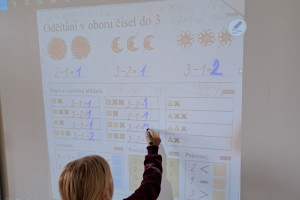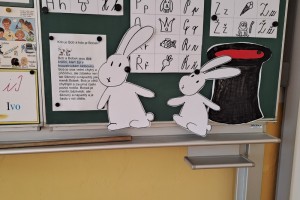 Zahájili jsme jako třída Boba a Bobka, počítáme s bonbóny, kostkami, sestavujeme písmena z drátků a špejlí, procvičujeme ruku uvolňovacími cviky, hrajeme pohádky (O řepě, Medvídek a kamarád), učíme se na interaktivní tabuli první písmena.