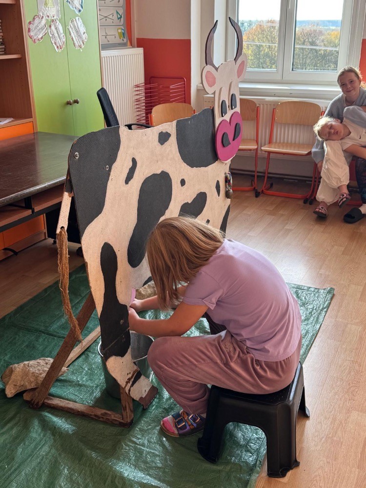 Žáci se během programu dozvěděli důležité informace o chovu krav, péči o ni a také si vyzkoušeli dojení. Dále si každý žák vyrobil vlastní sýr, který si odnesl domů.