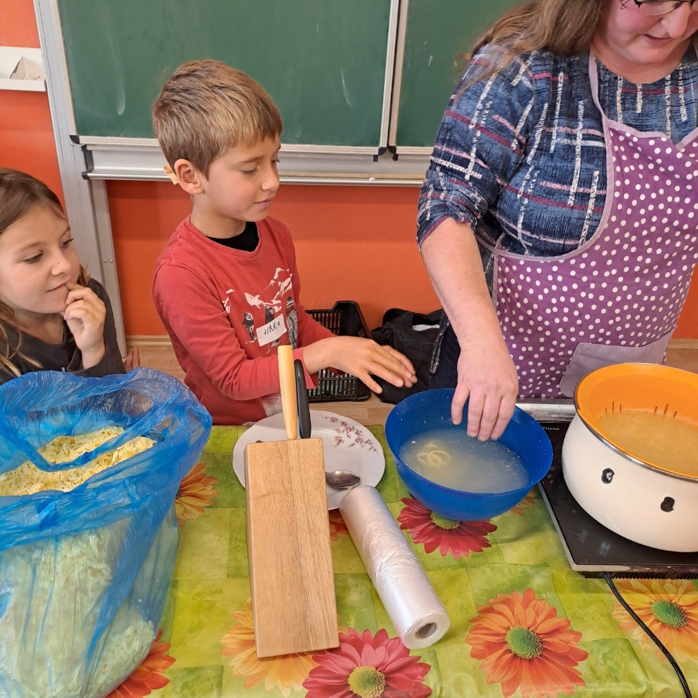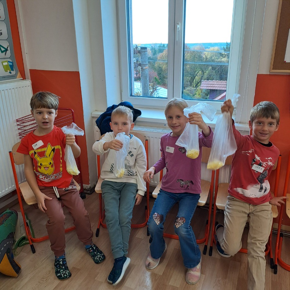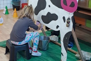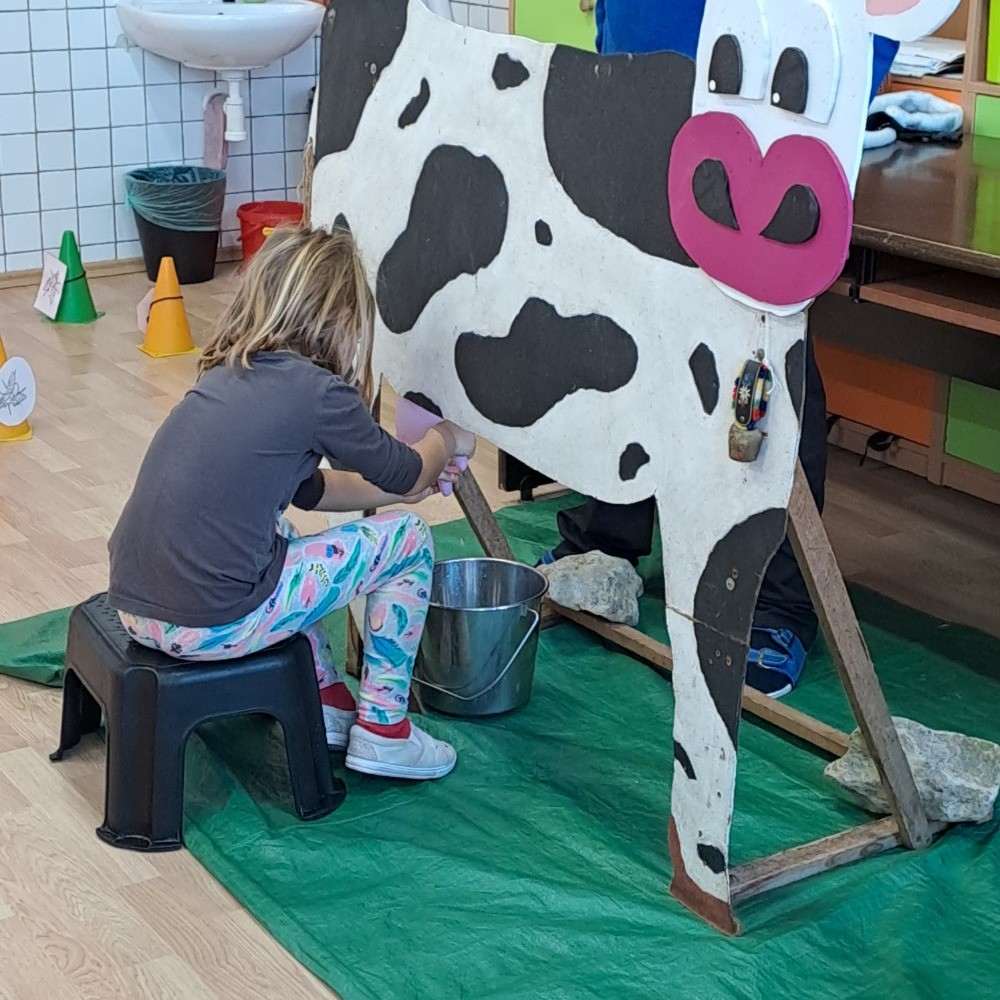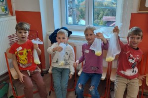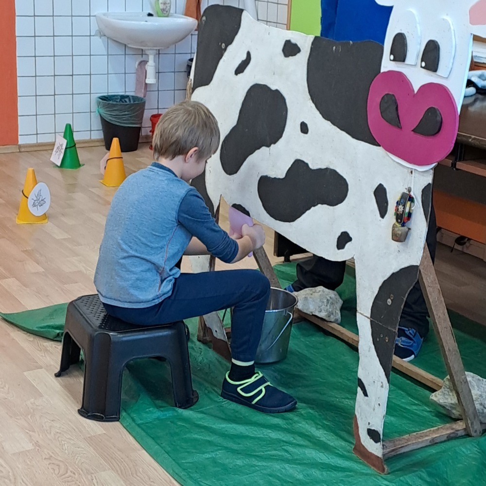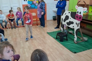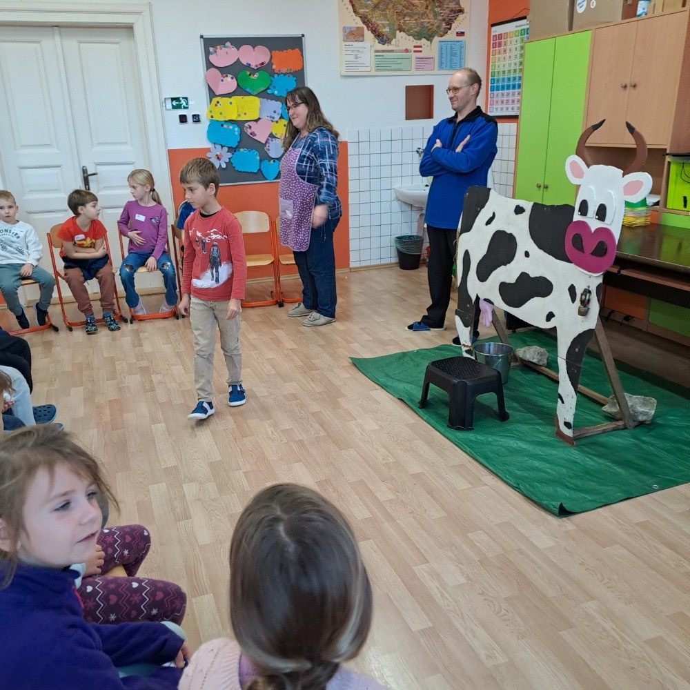 Přijela za námi kravička Jitka, kterou jsme si podojili, poučili jsme se o výrobě másla i sýrů a dozvěděli se více informací o chovu dobytka. Začínáme se připravovat na vánoční svátky, cvičíme koledy na Zpívání v kostele a básničky pro Mikuláše.