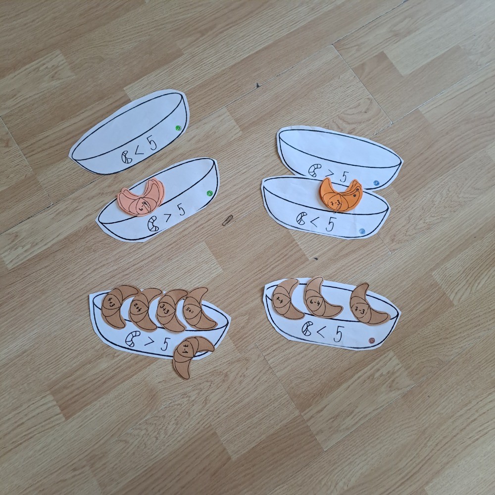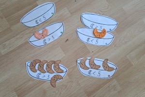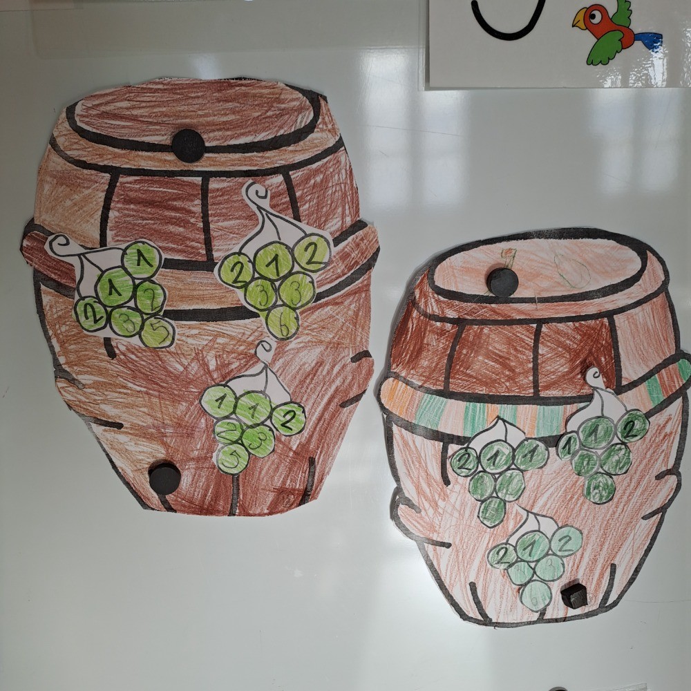 Užili jsme si svátek sv. Martina čtením komiksu, tříděním obrázků, řazením rohlíčků s příklady do správných misek i počítáním pyramid z hroznového vína.