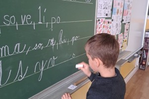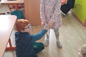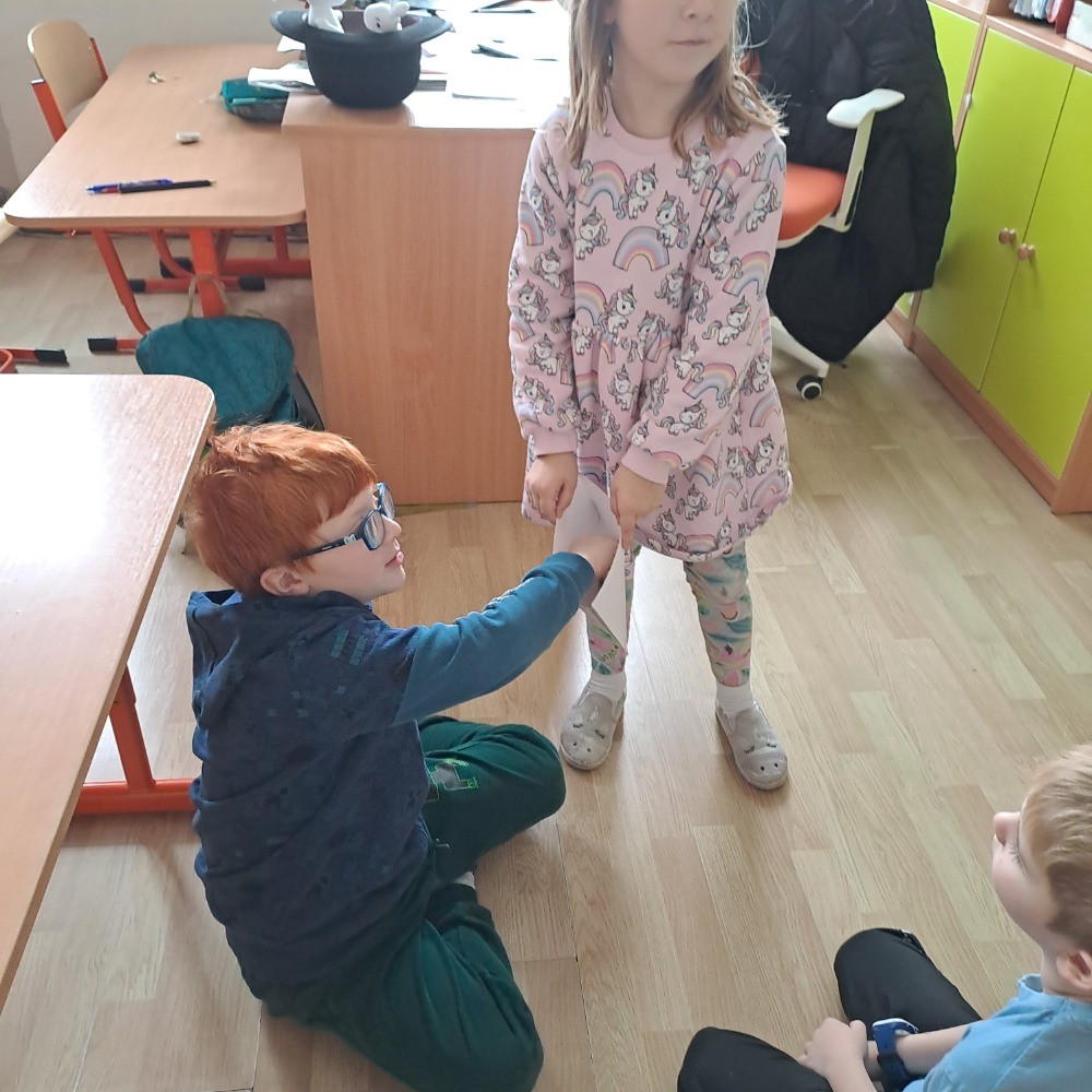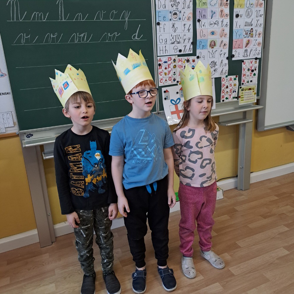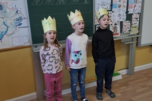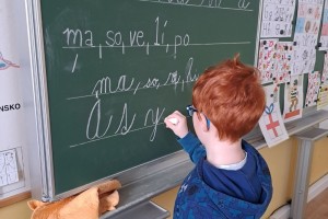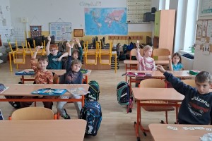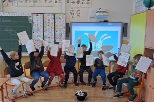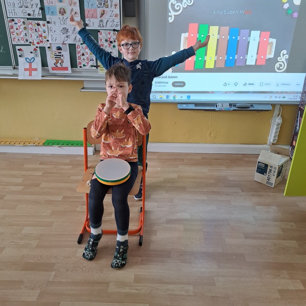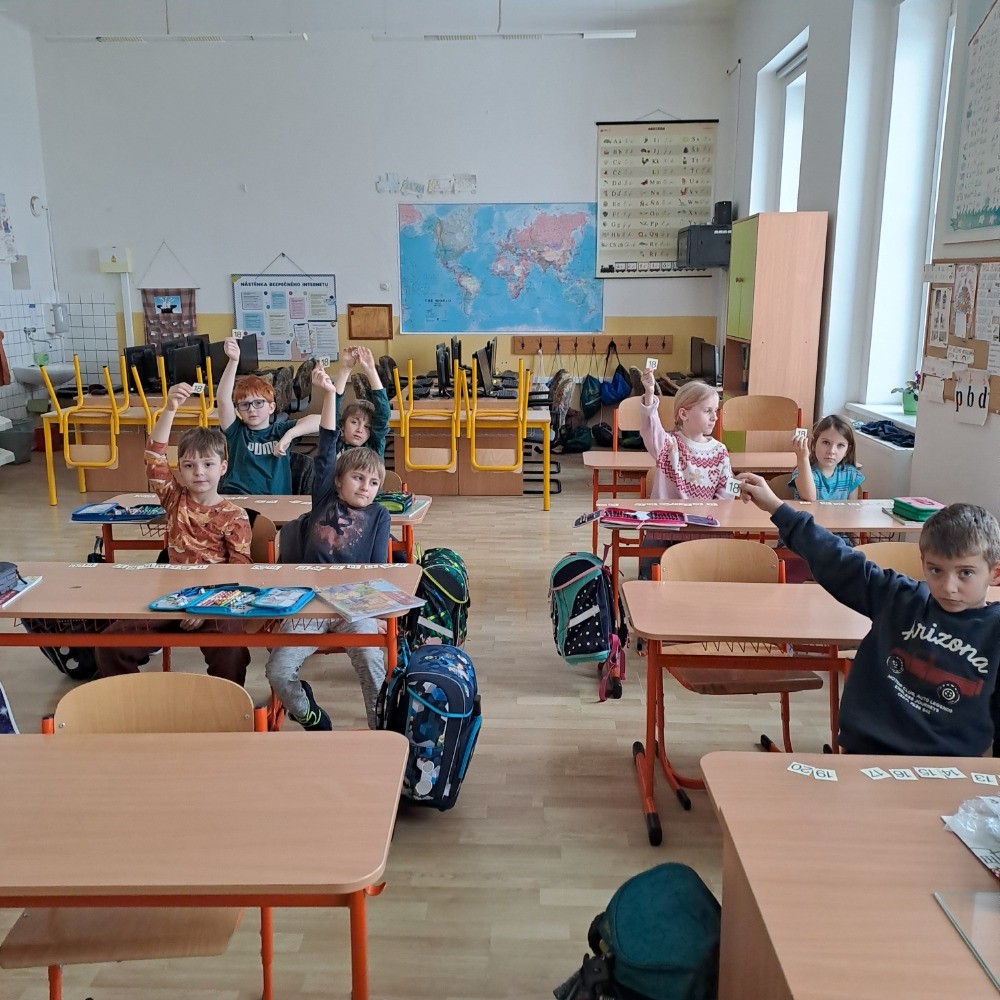 Písmenka na tabuli jsou z poloviny vybarvená. Trénujeme opis a přepis slov, zvládáme i diktáty písmen a slabik. V matematice jsme začali počítat od deseti do dvaceti s penězi, kostkami i s čísly. Skvělé bylo bruslení v hodinách tělocviku, které se nám hodilo k povídání o bezpečnosti a zimních sportech v prvouce. Dramatizujeme písničky. V závěru ledna nás čekalo první vysvědčení a pololetní prázdniny!