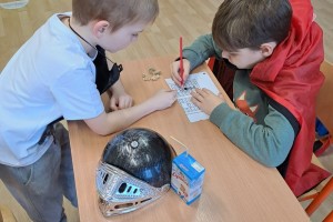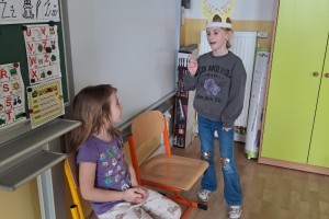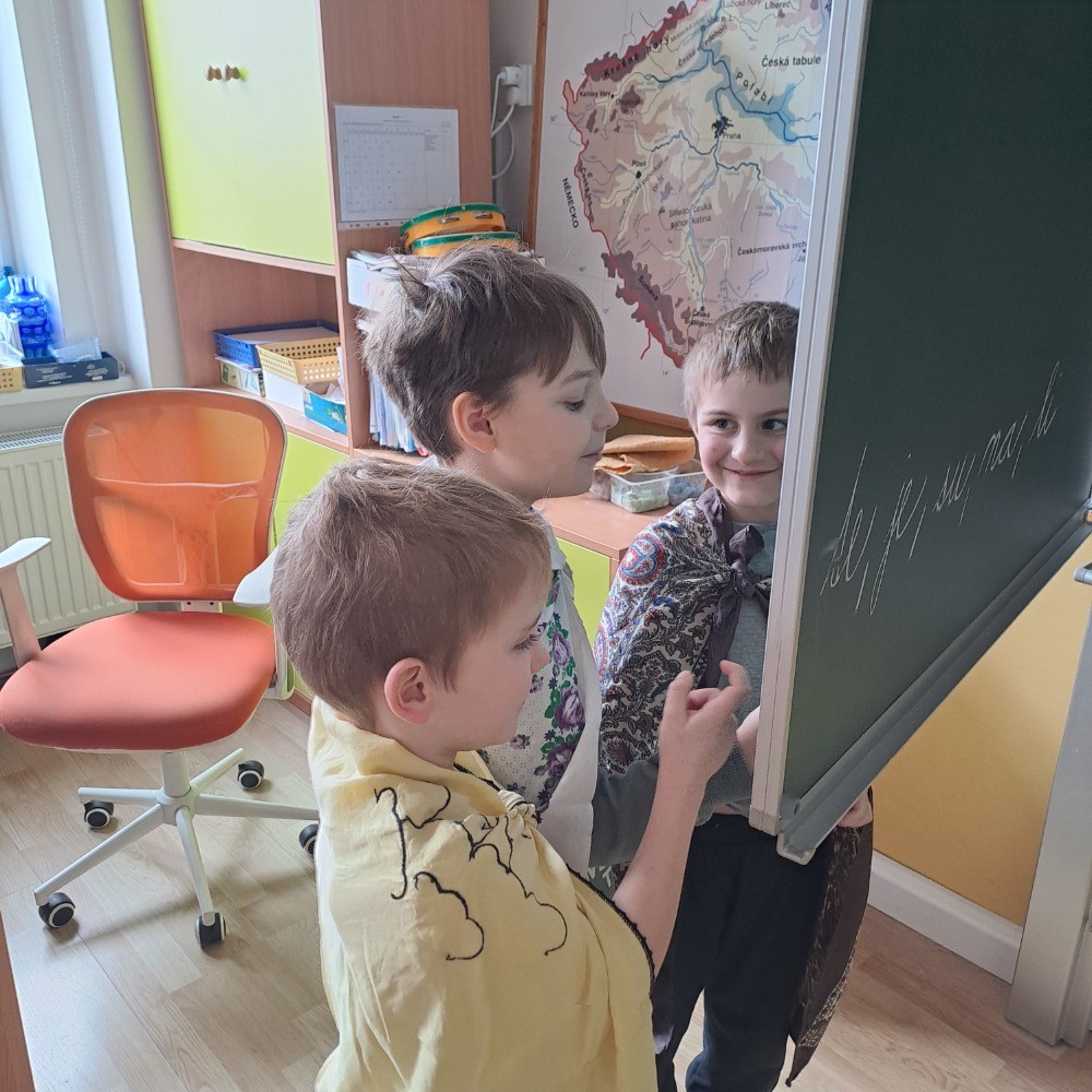 Pokračujeme v nácviku čtení s porozuměním, dramatizovali jsme pohádku O Smolíčkovi, učili se zápis dalších písmen, zvládáme přepis dvou vět z tabule i diktát slabik a slov. Stále skládáme z písmen i ze slabik. Odčítáme a sčítáme do 20 bez přechodu základu deset. Řešíme vztahy o n více. Bavilo nás koulování s úkoly. V prvouce jsme si povídali o práci lidí a začali jsme kapitolu Člověk a jeho zdraví – Spolužáci, Lidské tělo. Skvělé byly opět akce: nově otevřené Planetárium v Praze s příběhem Polaris, masopust a zahájení plavání.