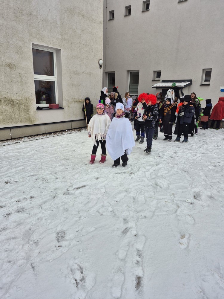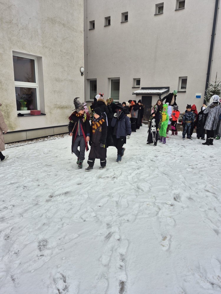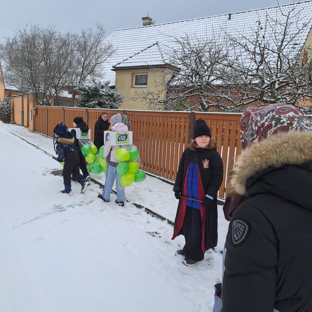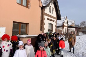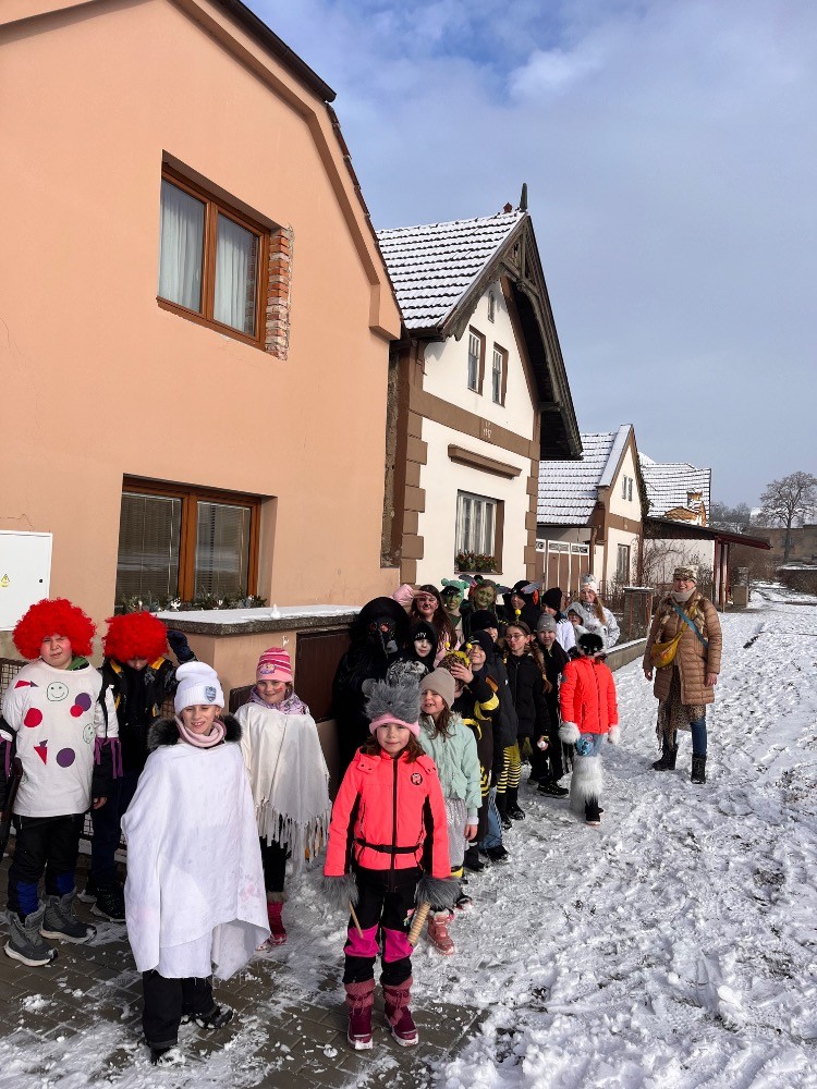 Na masopustní úterý jsme vyrazili na průvod do obcí Kostelní Hlavno a Sudovo Hlavno. Žáci se převlékli do originálních kostýmů a během cesty zpívali masopustní písně. Obě skupiny ušly více než 5 km a zaslouží si velkou pochvalu.