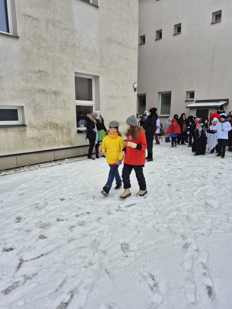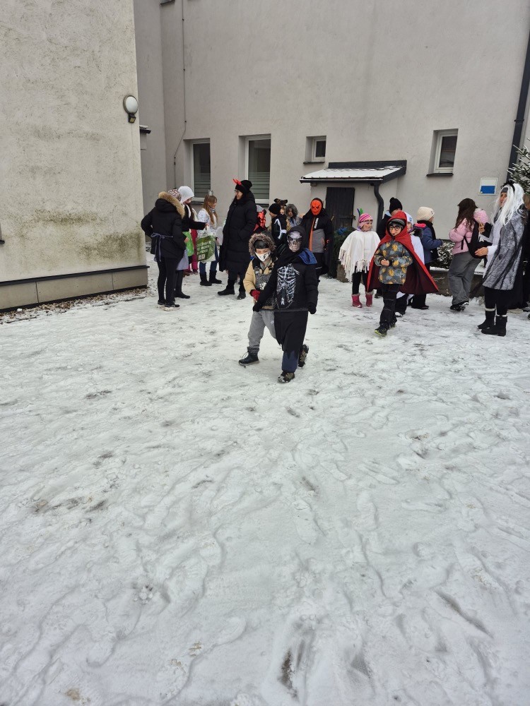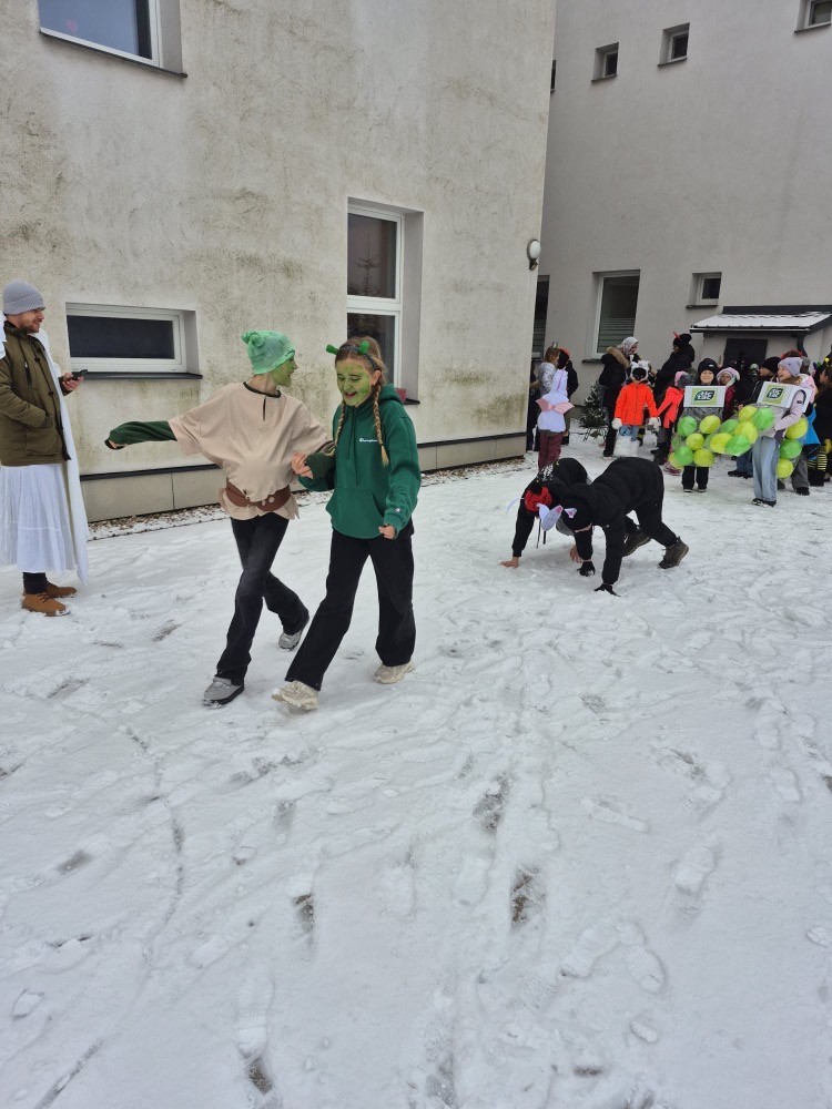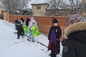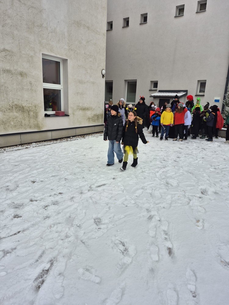 Na masopustní úterý jsme vyrazili na průvod do obcí Kostelní Hlavno a Sudovo Hlavno. Žáci se převlékli do originálních kostýmů a během cesty zpívali masopustní písně. Obě skupiny ušly více než 5 km a zaslouží si velkou pochvalu.