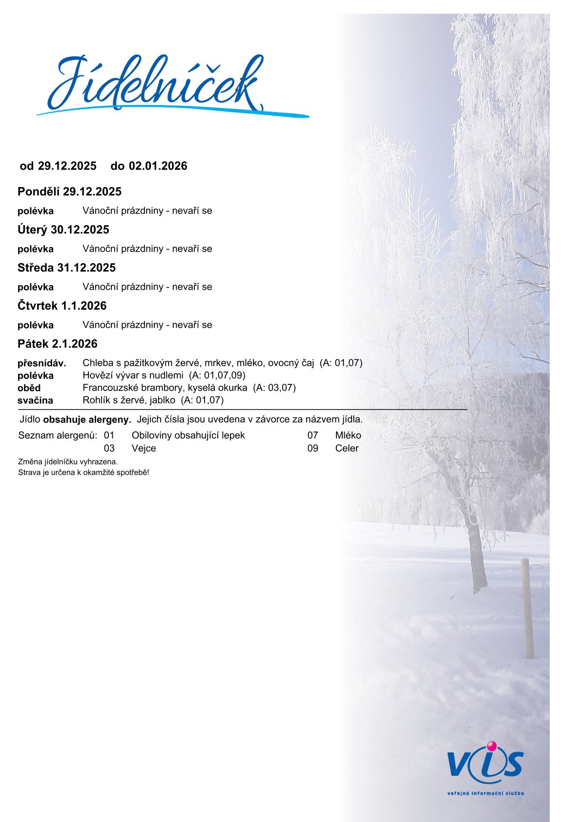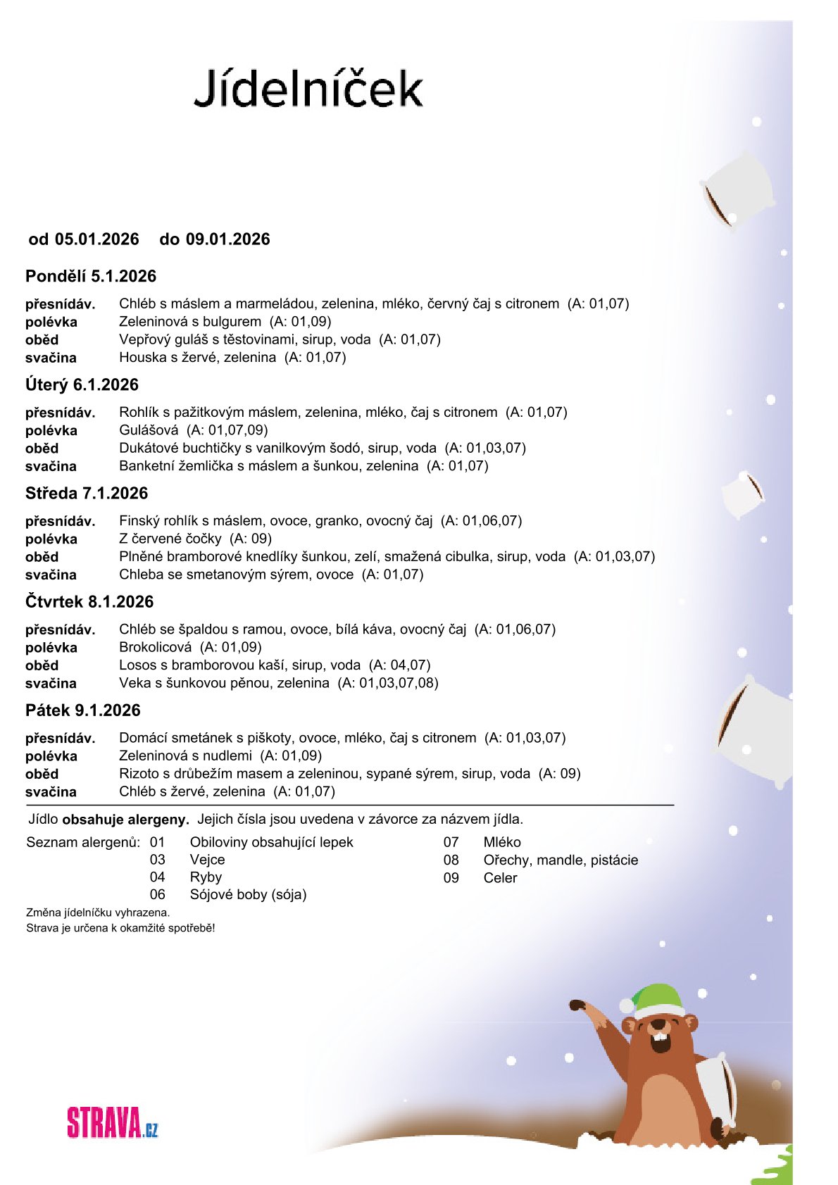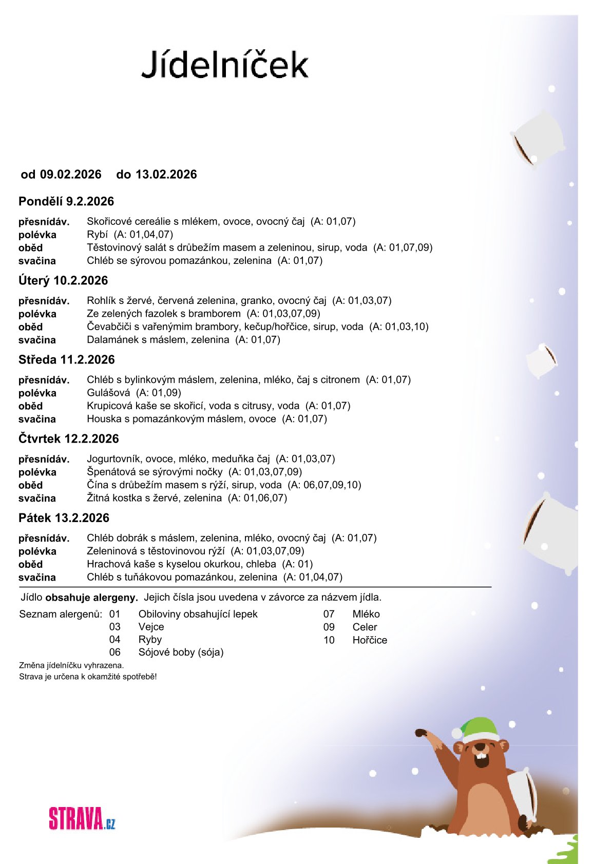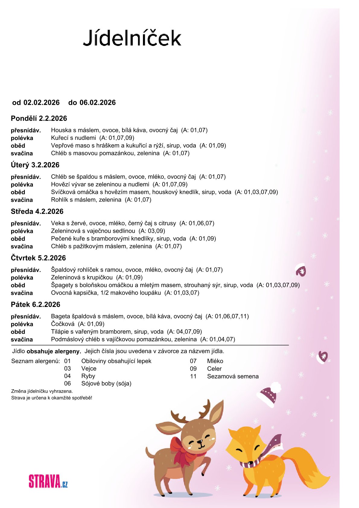 STRAVA JE URČENA K OKAMŽITÉ SPOTŘEBĚ. ZMĚNA JÍDELNÍČKU VYHRAZENA